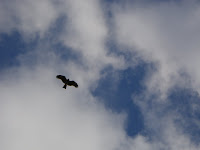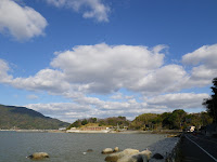 青空、空を飛ぶ鳥。お寺さん。余裕の往路です。といいつつも、自分の出せる平均速度と目的地までの距離は分かっているので、実は内心焦っていたりもして。パノラマ撮影は失敗。