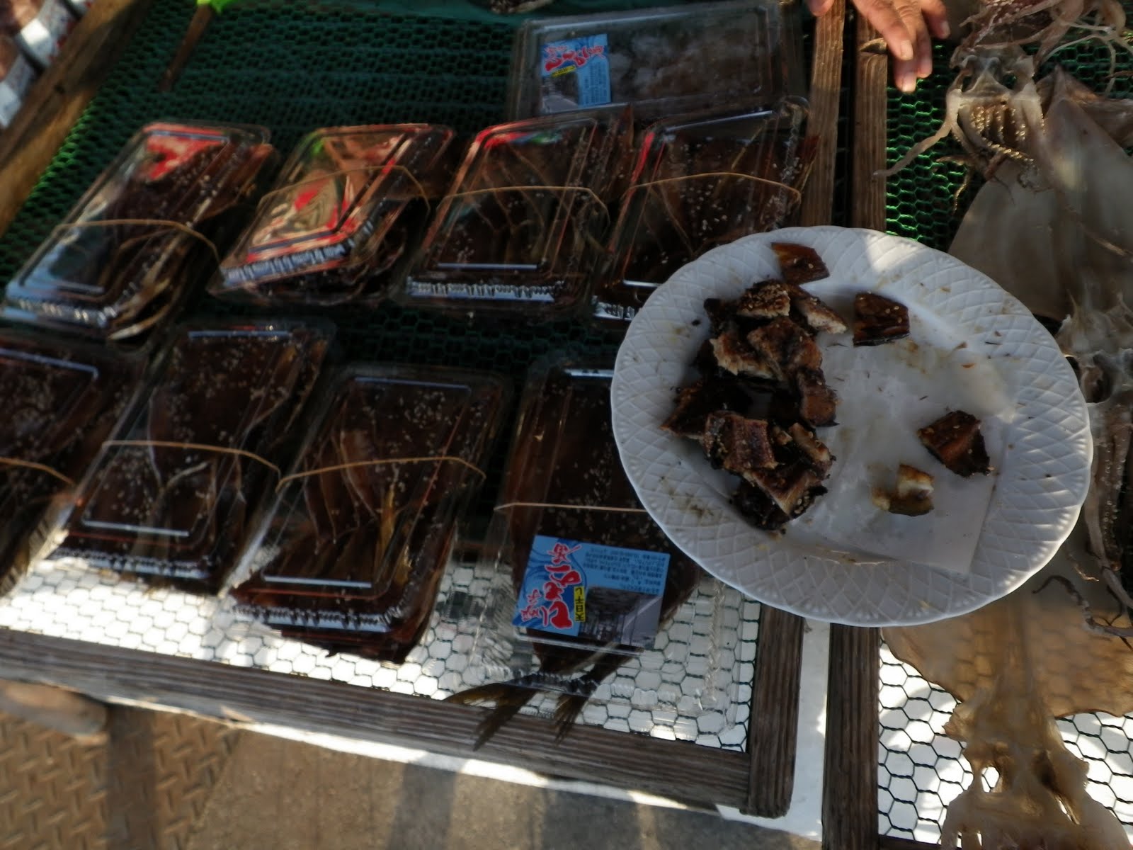 というわけで、干物も購入することになりました。みりん干しを味見させてもらって、その場で塩分も補給できました。流石に、自転車を3時間以上漕いだあとに食べる補給食以外のものは極上です。今まで食べたみりん干しのなかでも最高にうかまったわけです。で、お店のおばちゃんに、あのー、ゲソ天食べたいですけど、おすすめはーと、情報収集も怠りません。すると、いかしゅうまいを食べた店でもいいけど、自転車の軽装で、軽くゲソ天を食べたいなら、この道沿いの食堂で食べるのが安くていいよーというネタを仕入れることができました。