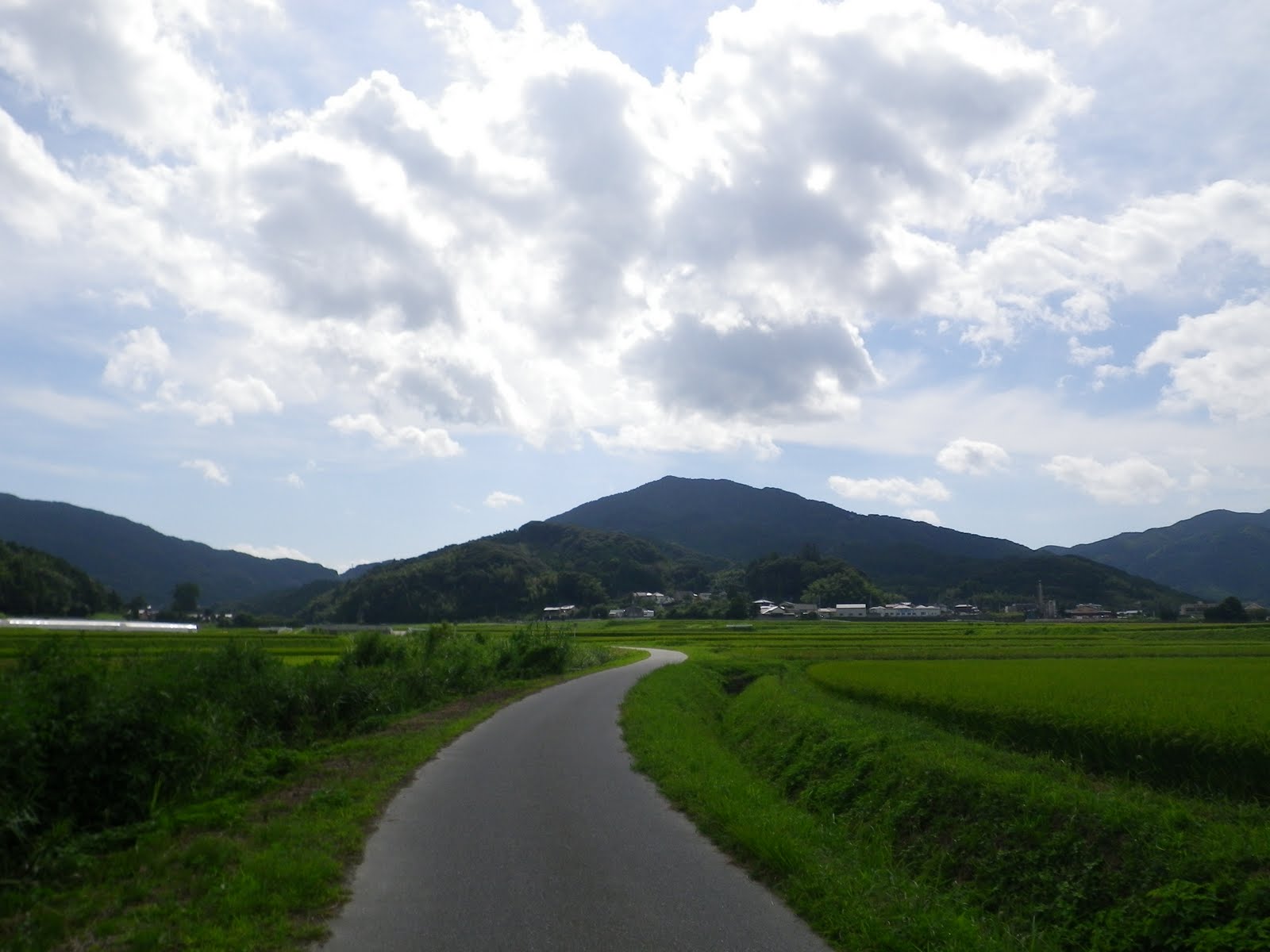 延々と続く田んぼの道。山から吹き降りてくる風が、用水路を越えて湿り気を帯び、自転車を漕いで熱くなった体を冷やしてくれます。空気もうまいわけです。風、気温の変化、呼吸。峠を越えたことによる発汗。この時点ですでに死亡フラグたってました。
