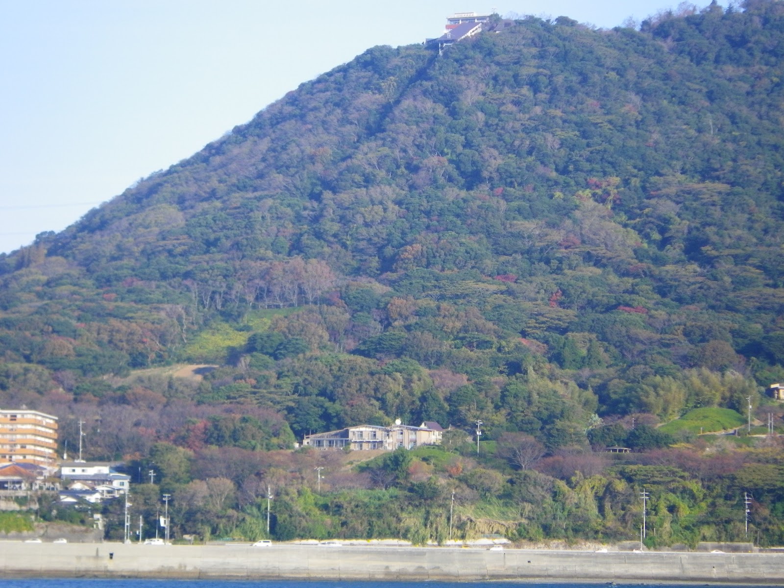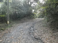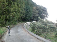 で、問題の火山登頂ということになります。ナビにも道は登録しており迷う心配はなく、最初の内はミカン畑だなあとかのんきなものでした。が、傾斜がきつくなり、「火山 →」と書かれた、寺との分岐の先には