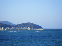 パン屋の裏側の海沿いに出ます。遠景に海釣り公園があります。