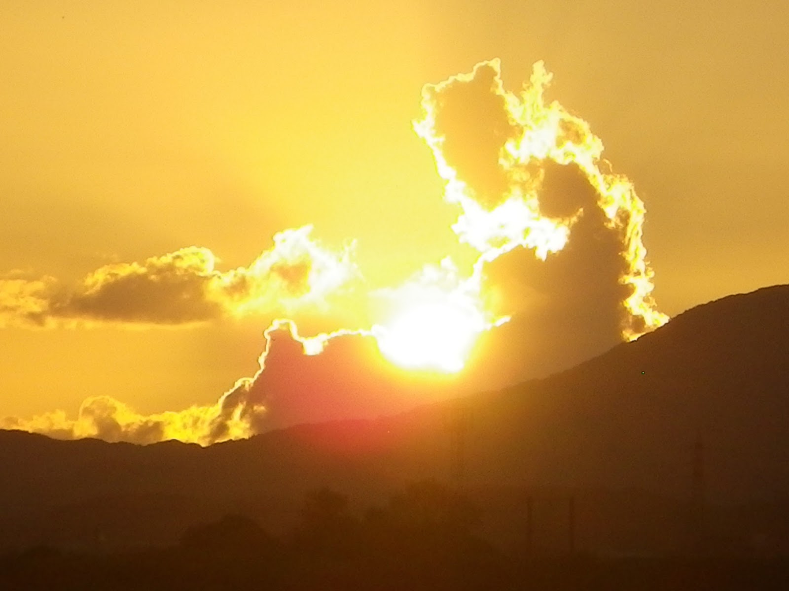 自転車、雲、普賢岳という上からの順番で映るようにしてみました。