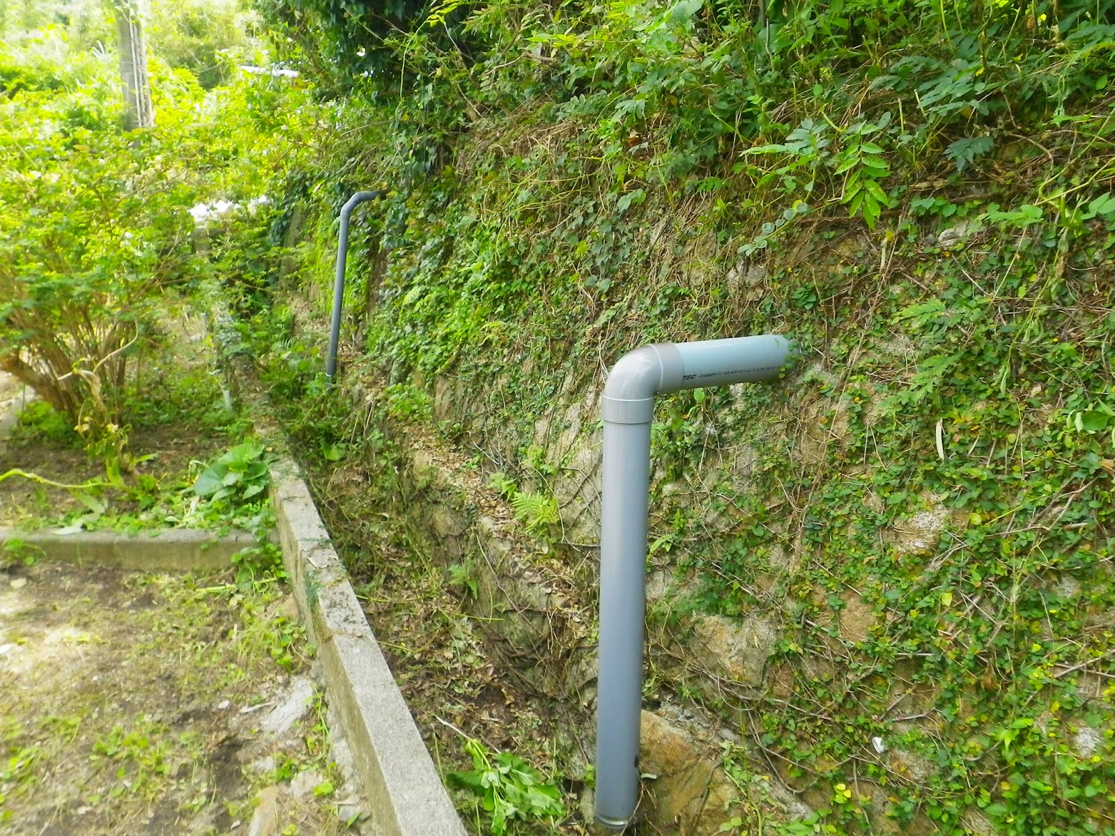 歩道をやむなく走行して、雨水管と遭遇。おお。