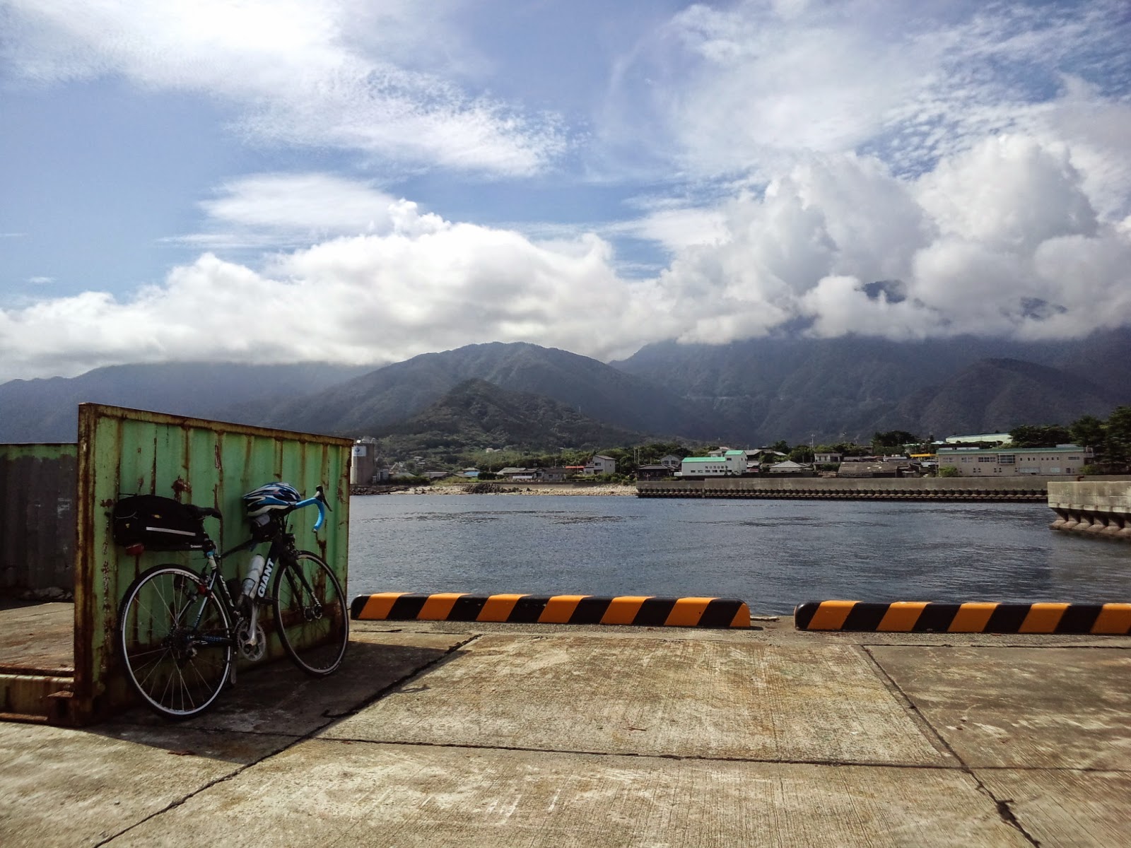 宮之浦港について自転車を組み立て。輪行袋にもだいぶ慣れてきましたが、自転車に付属品が多いのと重量が15kgぐらいになってしまっているため、出し入れには20分ぐらいかかります。ハブダイナモがやはり面倒です。