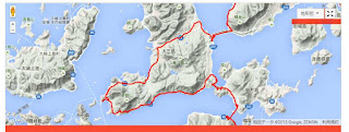 大三島で外周ルート走行イベントです。走るつもりはありませんでした。路面の青いラインも見えていましたし、看板も分かっていました。