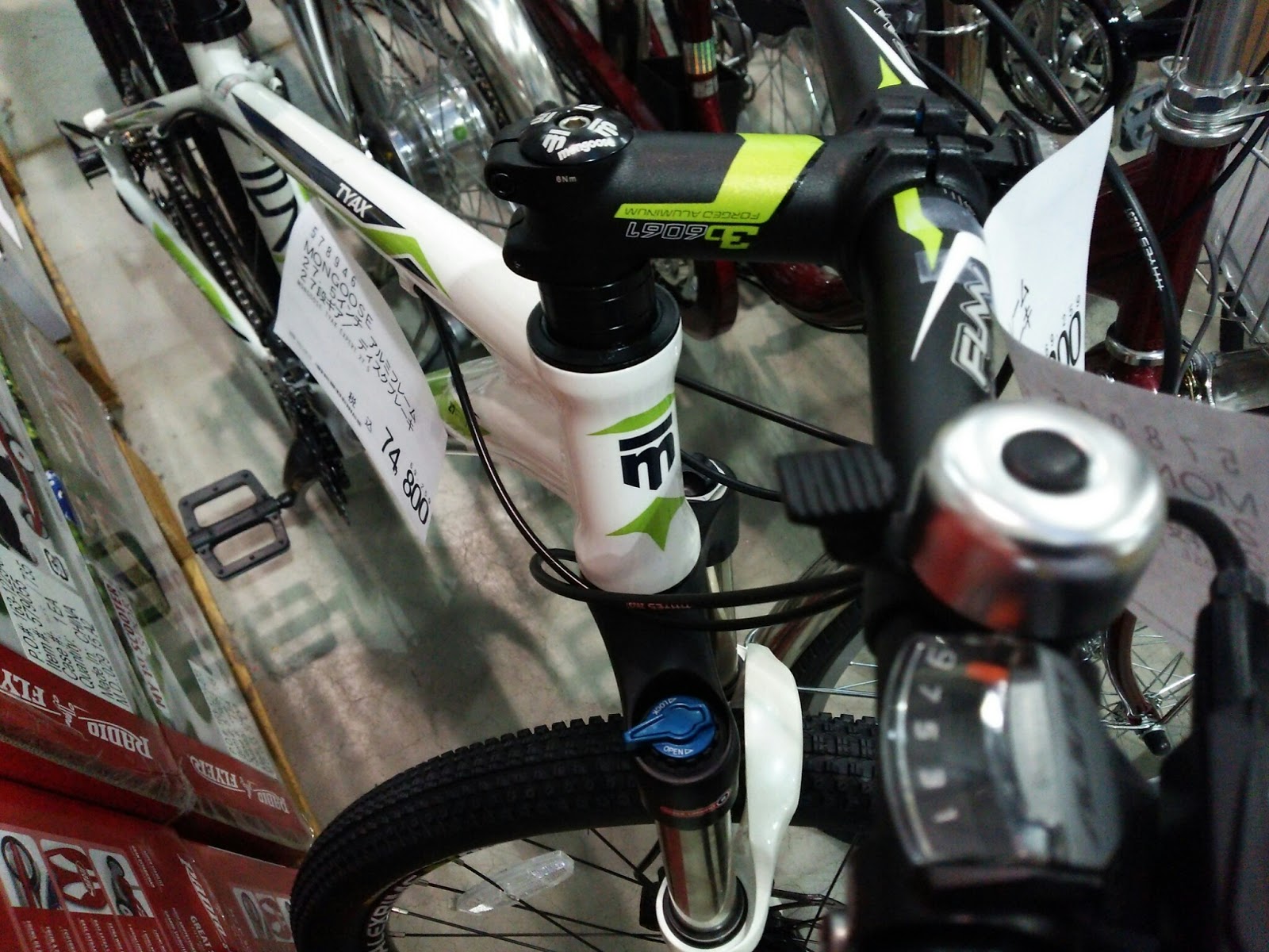 ここらあたりより、ちょい上のパーツ構成と思います。フロントフォークがリンク先はXCMで24段変速ですが、コストコマングースはXCRになって27段変速で、74,800円