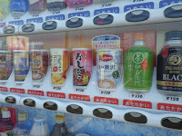 途中の築城の自衛隊航空基地の自販機。お汁粉、コーンポタージュ……これは、夜に脱営する自衛官を捕まえるトラップなの?