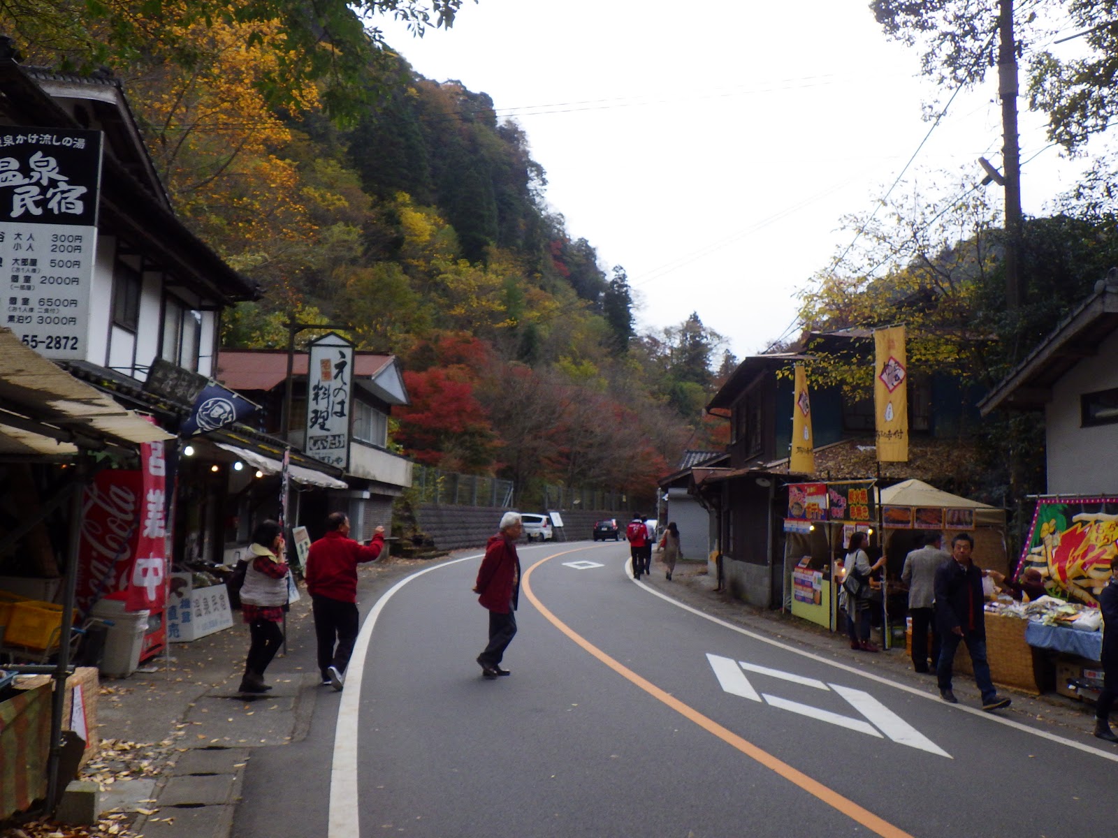 貸出受付の人には、紅葉狩りで耶馬溪サイクリングターミナルからなら御霊紅葉がおすすめですと言われています。道路を横切るので危ないのですが~と、色々と説明があります。