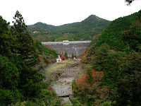 ダムの奥も紅葉です。