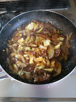 焼肉のタレでレバーと一緒に玉ねぎを炒める。