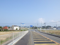 途中で地元のロードバイク乗りに追い抜かれて、ナイスな機会と思ってトレインタダ乗りを試みようとしましたが追いつけませんでした。信号で追いついたけど、そこで山か峠へ登って行かれたのでトレインタダ乗り断念。
