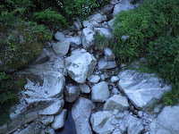 犬に追われて威嚇しつつ滝の入口まで来ましたが、あら、こっちはもう通行が駄目そう。