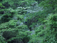たぶん地崩れの後に木が生えているのだと思わしき箇所。