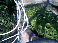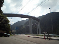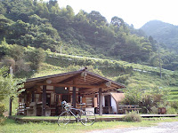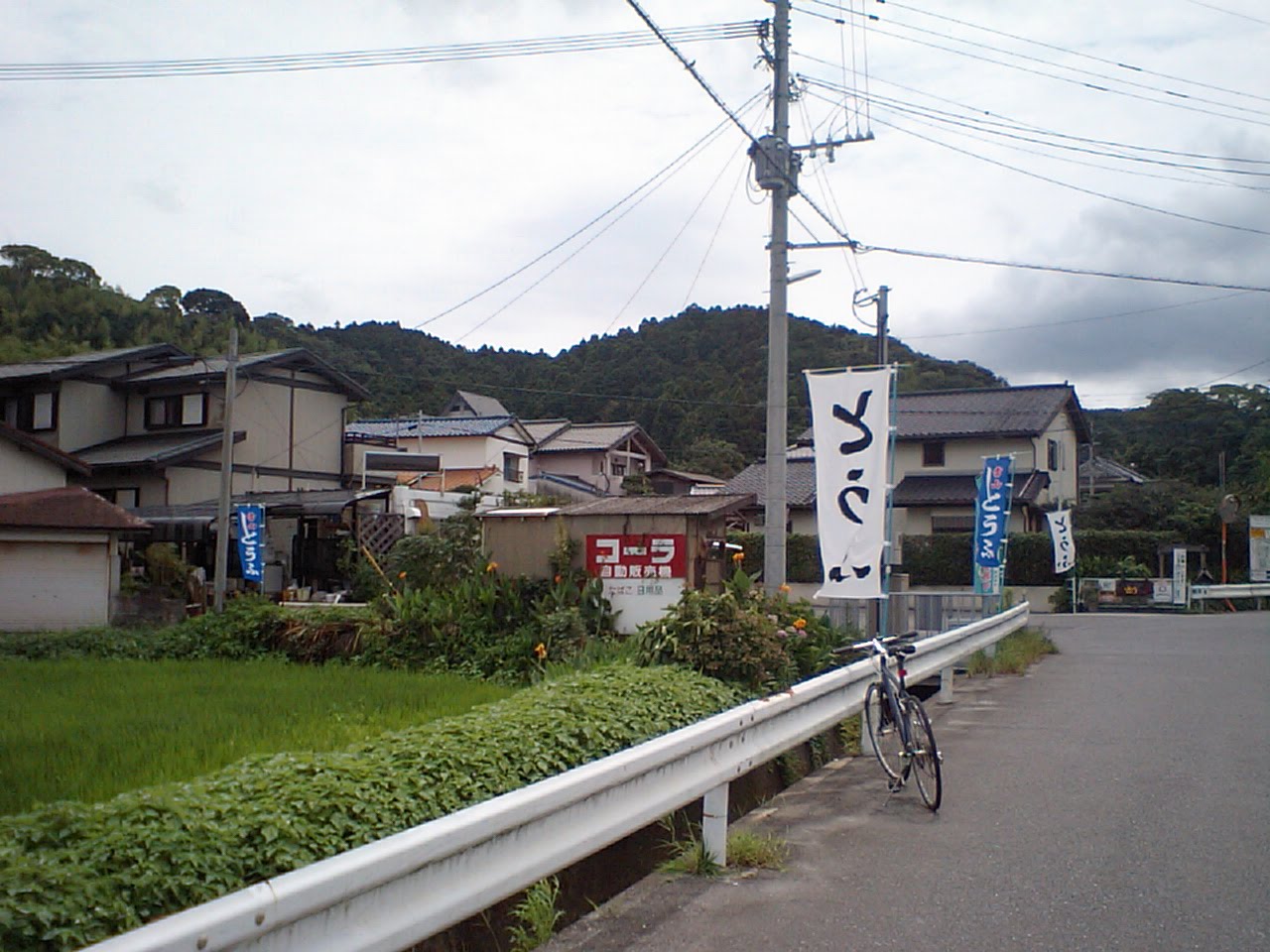 で、そのころから天気はどんよりだったのですが、十数分後に雨に遭遇しました。峠の途中のパン屋で、パン、豆腐屋で豆乳を1.5L購入して、ビニールをフラットバーロードのハンドルにぶら下げて帰宅。濡れながら、泥よけがないので、背中に盛大にしぶきをまきあげながらの帰宅です。あと、豆乳1.5Lは無謀で、ハンドル操作が困難だったという。ああ。思えば、その時点で判断力が低下していたのです。