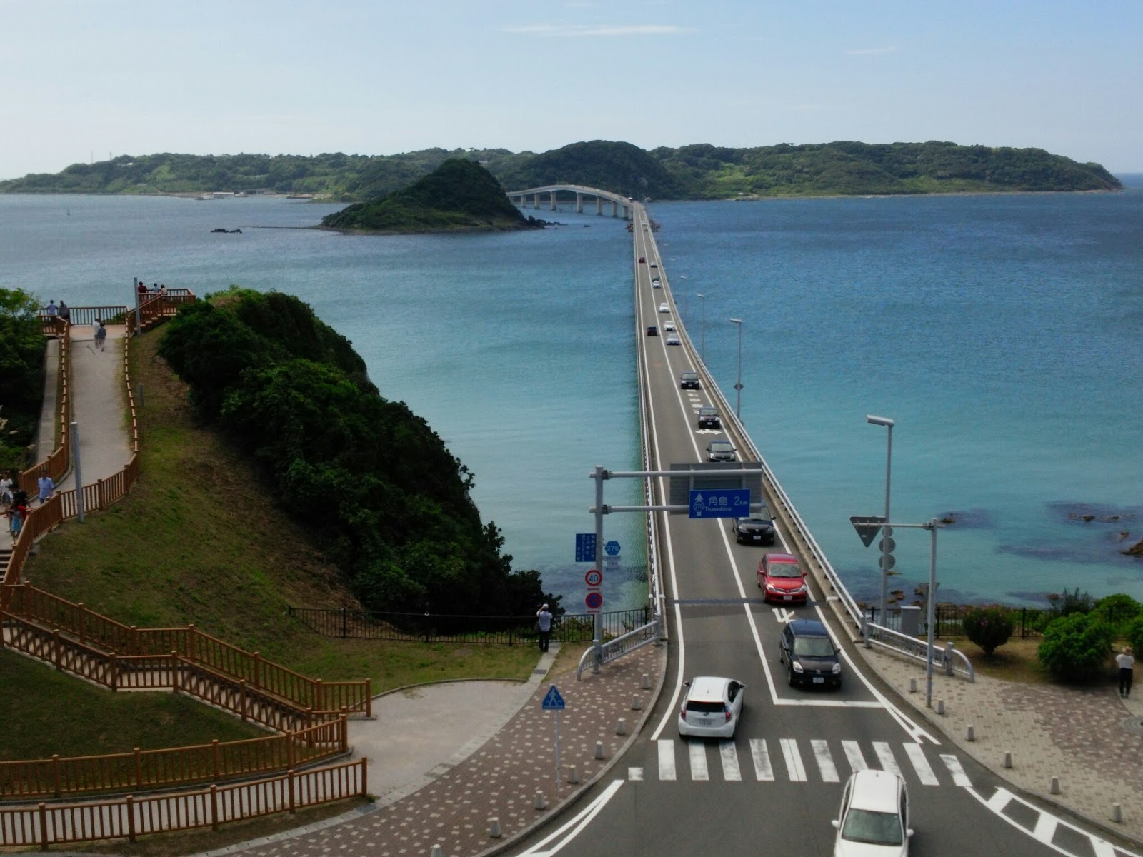 島。橋。その前には上り坂があります。