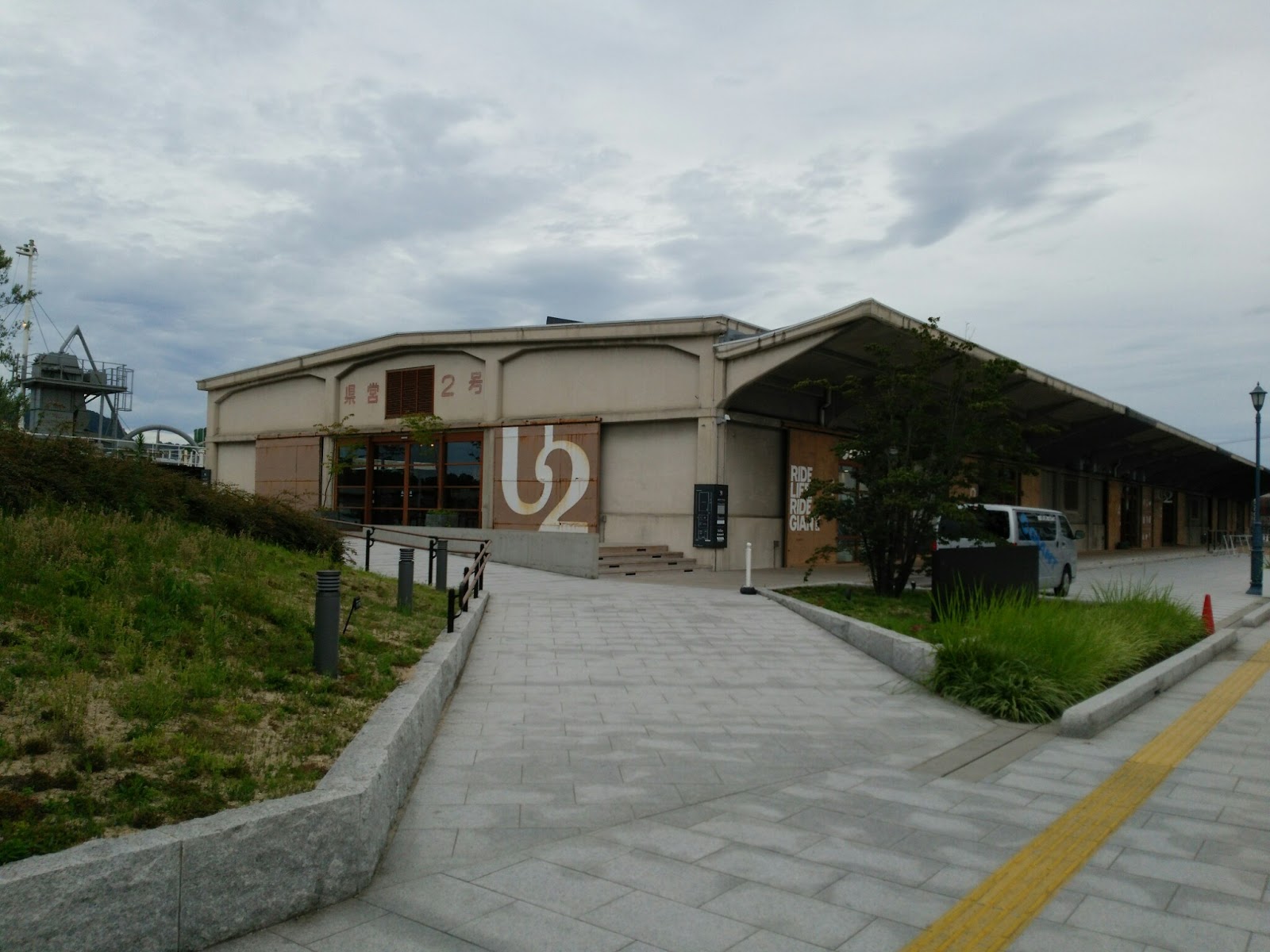 尾道駅側。U2。逆から読むと梅雨てきな響き。余裕があれば泊まりたい。それはそれとして、輪行袋にいれてしまえば、ホテルの選択肢も広がります。