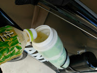 緑茶補給。これとは別に、500mlのペットボトルの炭酸ドリンクを飲み干します。発送用の住所書きなどで、少し休むことができました。