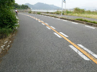 大三島で外周ルート走行イベントです。走るつもりはありませんでした。路面の青いラインも見えていましたし、看板も分かっていました。