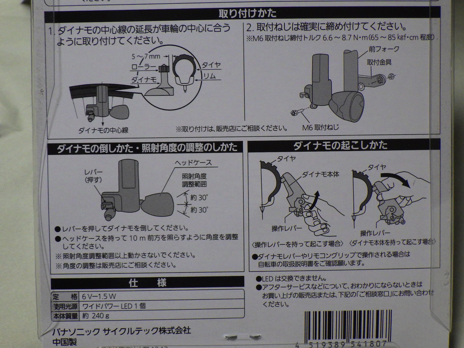 発電量は6V-1.5Wのダイナモになっています。もしかしたら、吸収されたSANYOの中の人の執念というか矜持で、