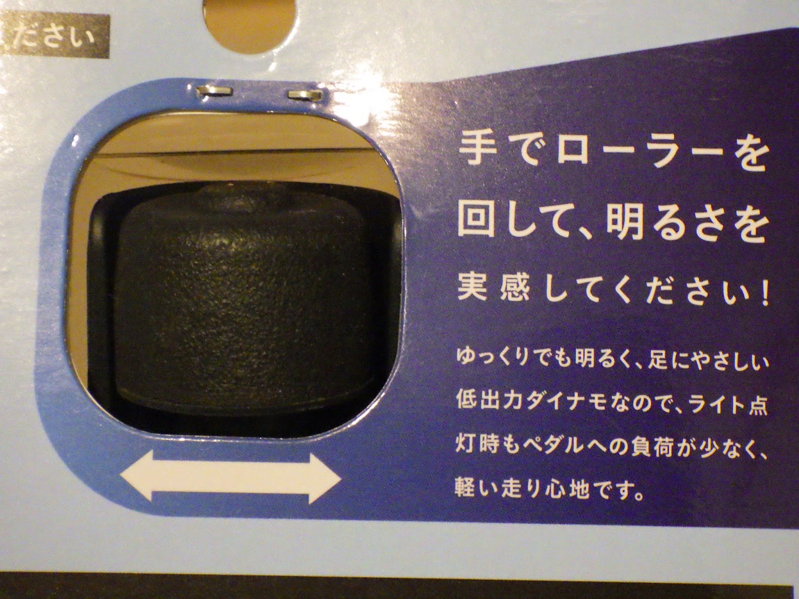 金属製ローラーで漕ぎが軽いものがパーツ取り換え無しで選べるのは、今のところ日本だけです。古くからある直径が小さい金属ローラーのダイナモは海外でもあります。ゴムローラーは大小えらべますが、ドイツのDymotecか仏国のAXAで直径が違うものから選ぶという感じです。