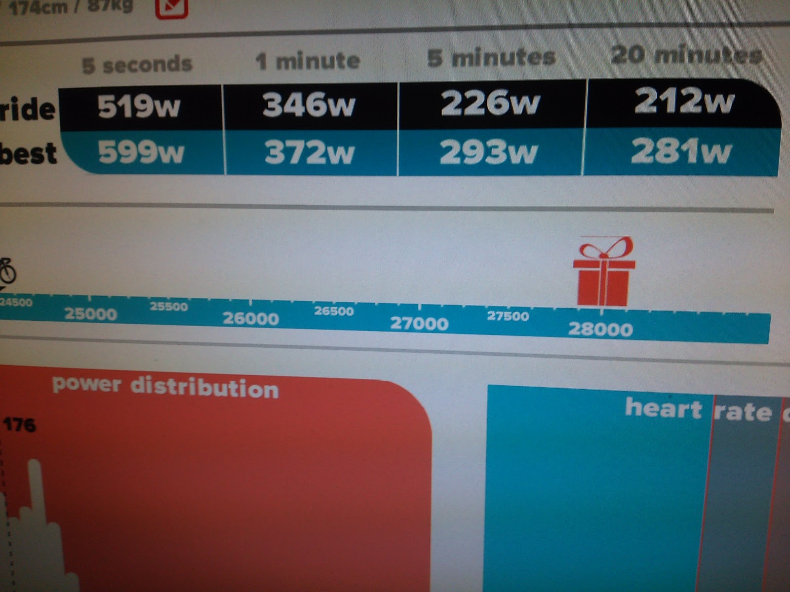 360Wを一分維持。膝の痛みが再発したけど、フェルビナクの塗り薬と、イブプロフェンで処置。ロングはむりめ。ケツも死にかけながらも気合いで継続。