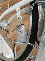クロスバイクのライト、Herrmans H-one Sが不調で、ちょっと他のライトをつけてみようとなりました。ブレーキキャリーパーに共締めにしている金具にとりつけています。
